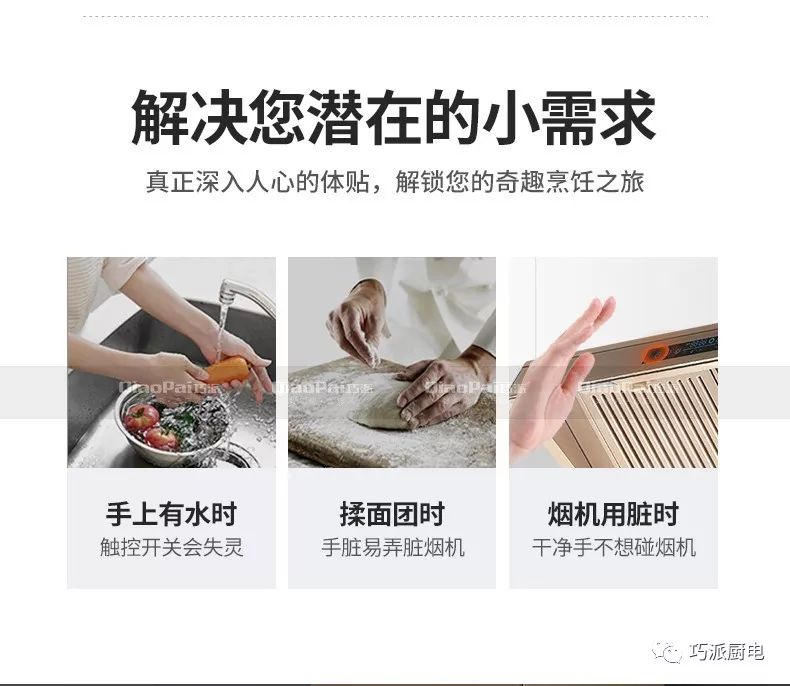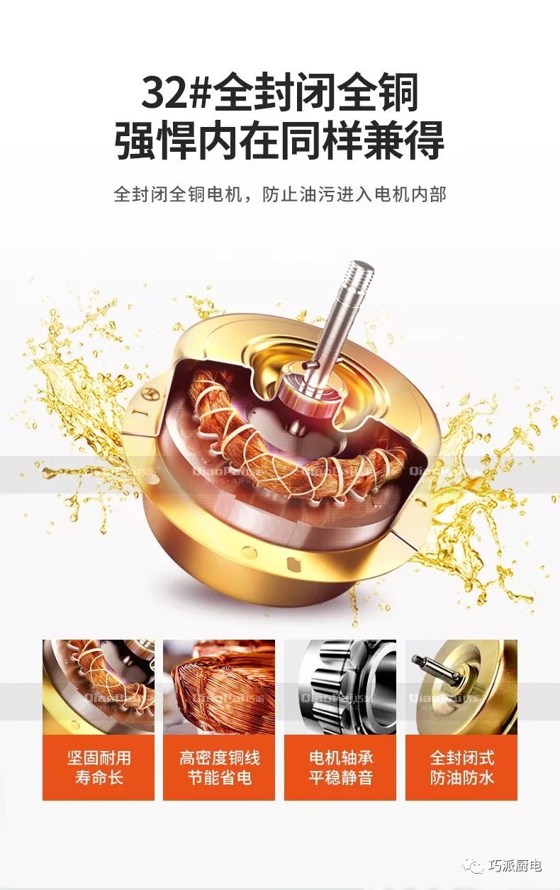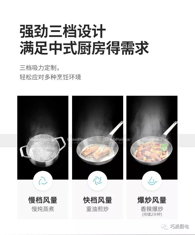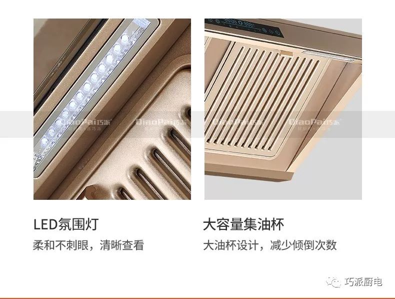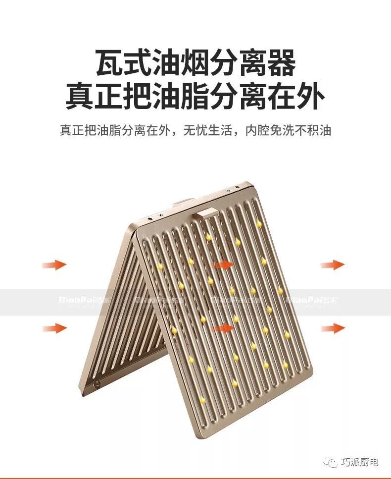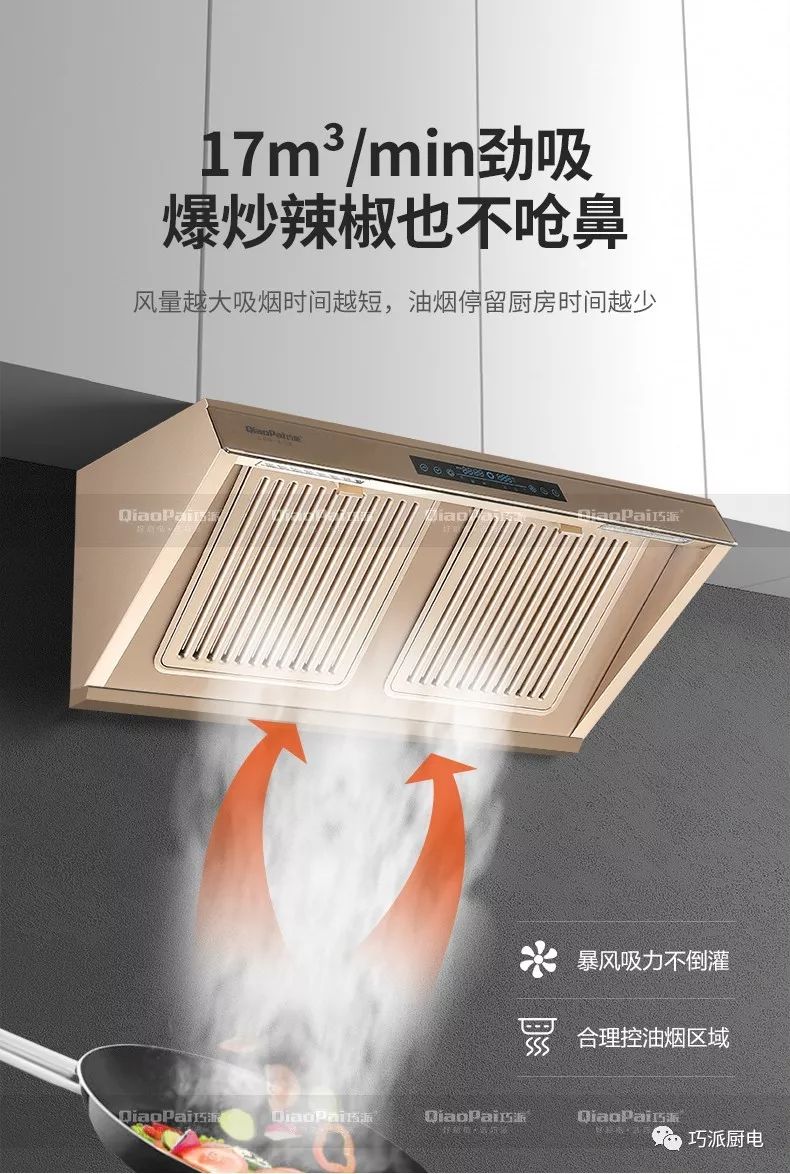 >不跑煙,不積油,不用洗 巧派廚電引領(lǐng)無煙廚房新時代 巧派M31S土豪金油煙分離油煙機 真正的油煙分離油煙分離時代已經(jīng)來臨。隨著油煙機技術(shù)創(chuàng)新與突破,油煙分離將被徹底引爆。在環(huán)保,健康的全民追求下,油煙分離已成為人人對油煙機的基本訴求。普通吸油煙機盡管解決了日常燒菜時的油煙問題,但煙機里堆積的油垢也是重要的污染源。美國環(huán)境工作組(EWG)研究發(fā)現(xiàn),吸油煙機機體內(nèi)沉積大量油垢,遇熱揮發(fā)后不僅會產(chǎn)生讓人極不舒服的氣味,同樣也富含大量致癌物質(zhì)。油煙分離伴隨著,免清洗,高氣味降低度,低污染的排放量的種種煙機功能的放大,似乎有一天,人們的無煙廚房的期望越來越近。