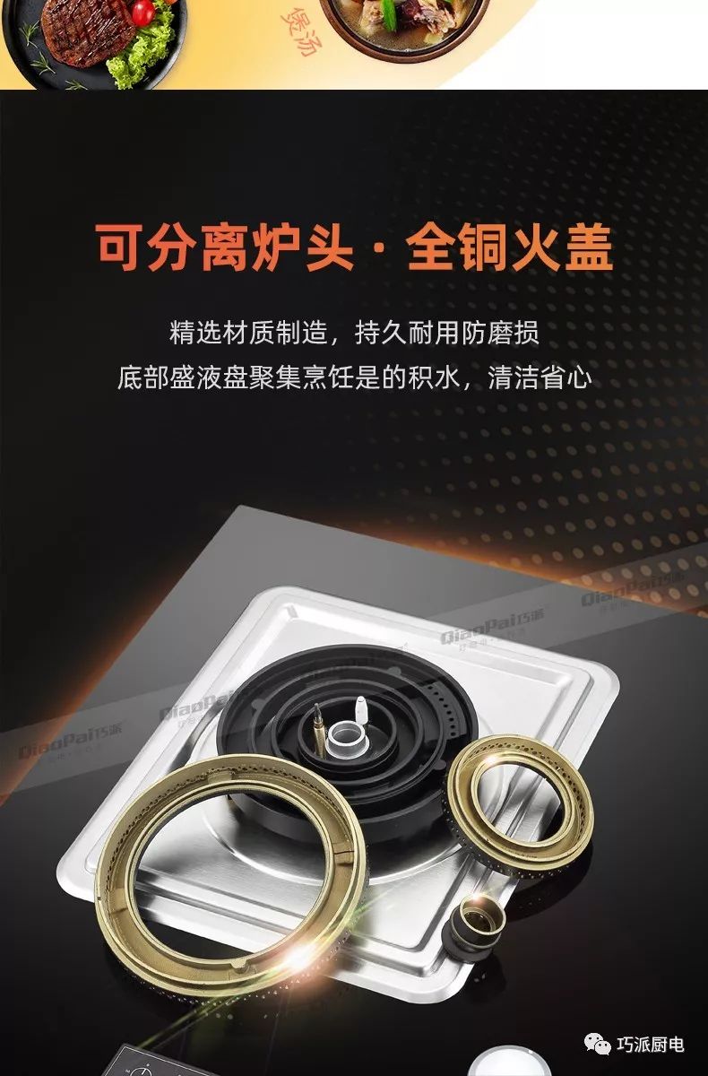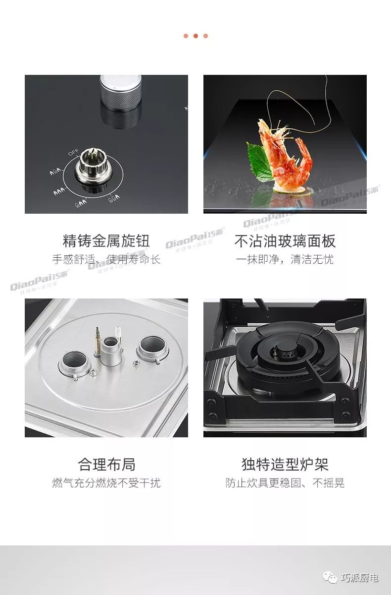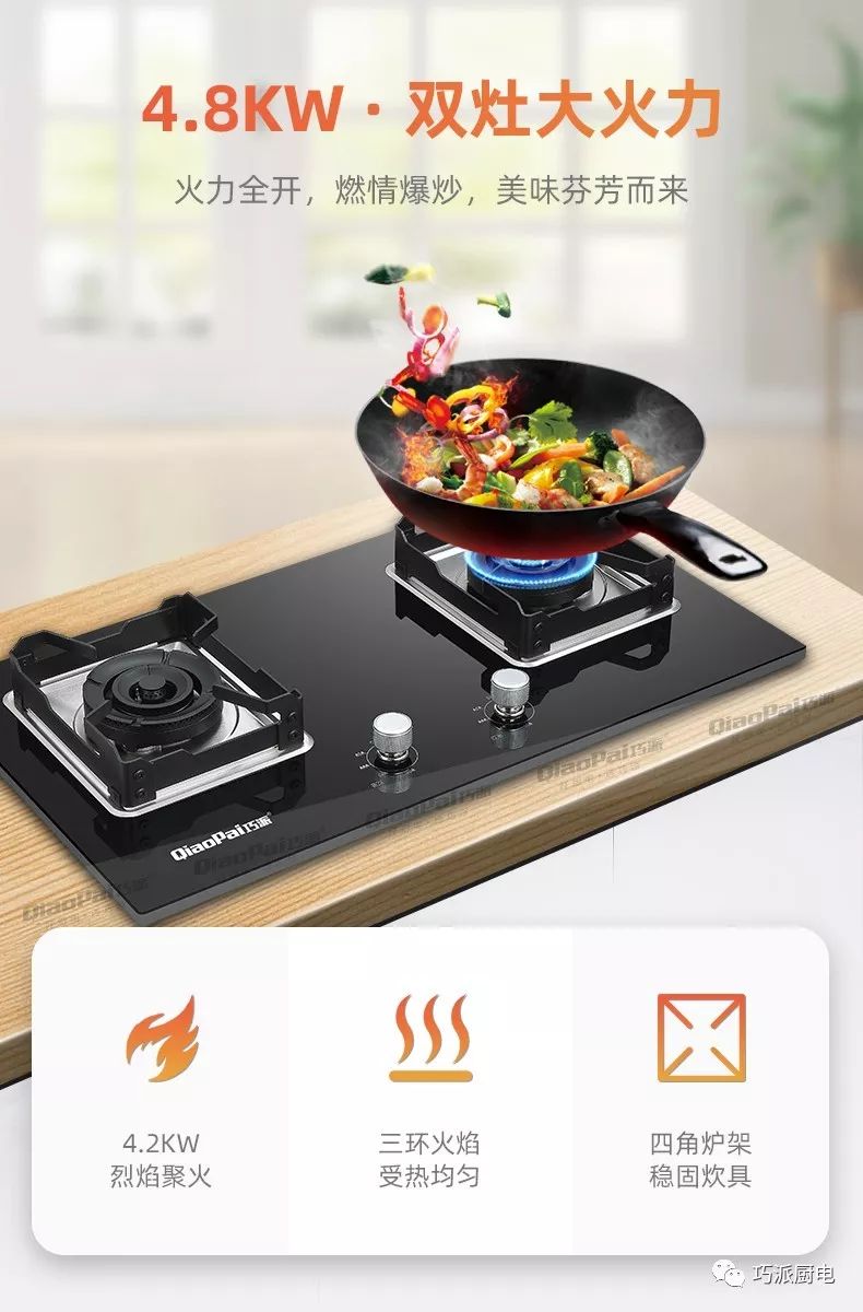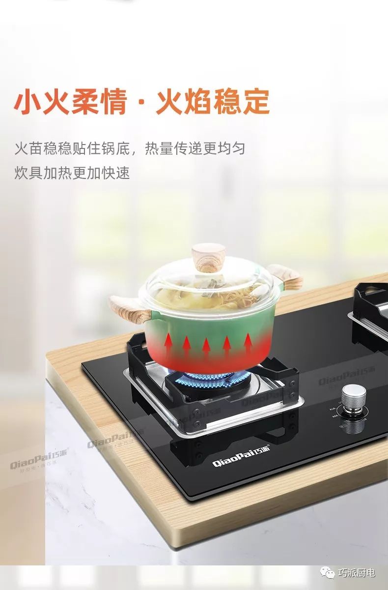 >燃氣灶怎么選?主要看這幾點,巧派猛火灶Q70,火力最高可達5.5kW,好灶頭巧派造我們從最初的柴火灶臺,到煤球爐,到液化氣罐配燃氣灶,再到如今的精致光潔的嵌入式灶臺,燃氣灶是以液化石油氣、人工煤氣或天然氣等氣體為燃料,進行明火加熱的烹調(diào)器。盡管我國燃氣灶技術引進的較晚,但發(fā)展速度卻十分迅猛。